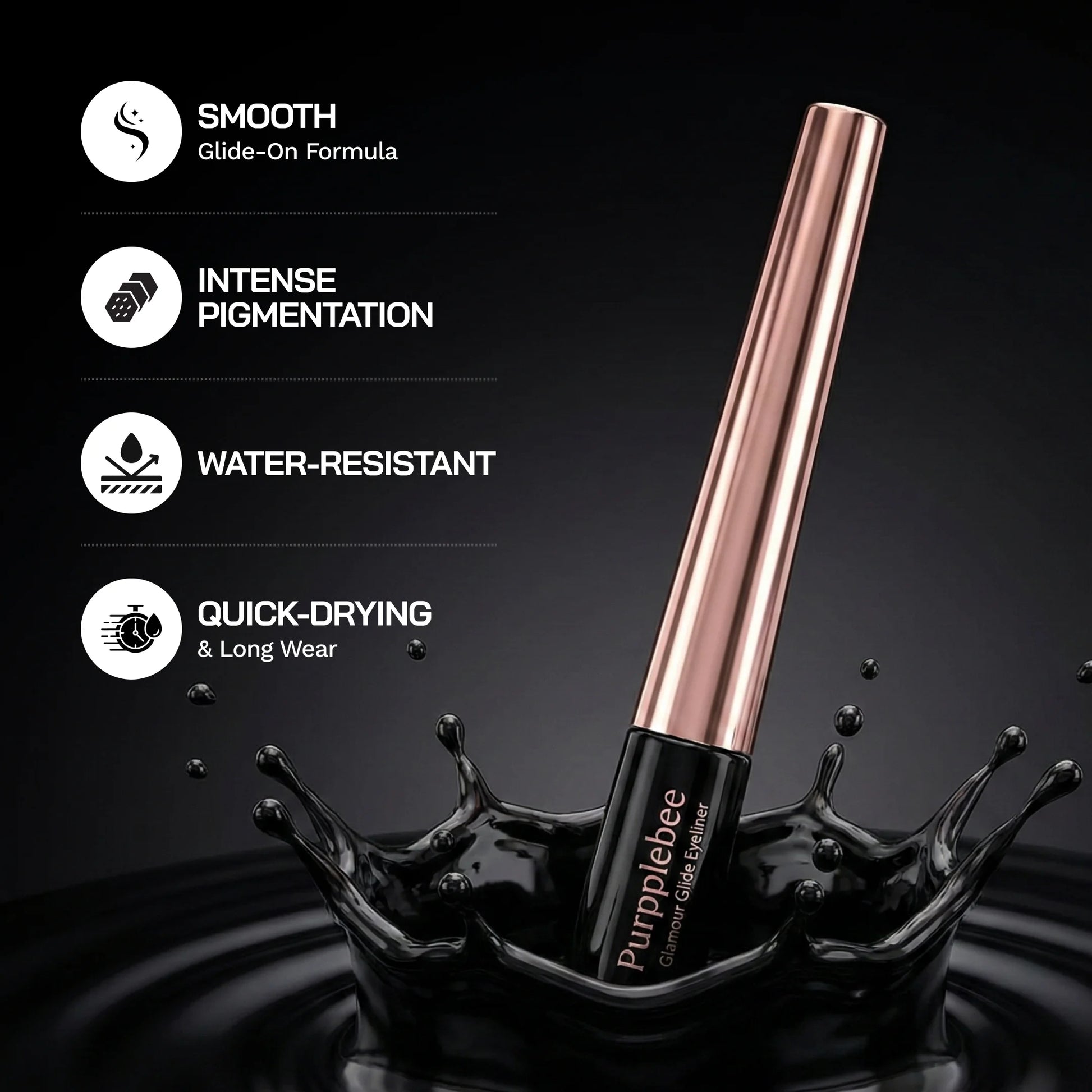 Purpplebee Glamour Glide Liquid Eyeliner Discover the secrets of dramatic and glamorous eye makeup with Purpplebee Glamour Glide Liquid Eyeliner. This high-end eyeliner provides a smudge-free and water-resistant matte finish that glides on smoothly, creating dramatic and deep lines with strong pigmentation. Whether you're going out for a simple day trip or a glamorous night event, this eyeliner is your secret to making your style shine.